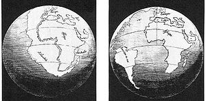 " من المفهوم الآن أن المادة الأقل وزنًا - ارتفعت على سطح الأرض - على حين أصبحت أمكنة المادة الثقيلة خنادق هاوية