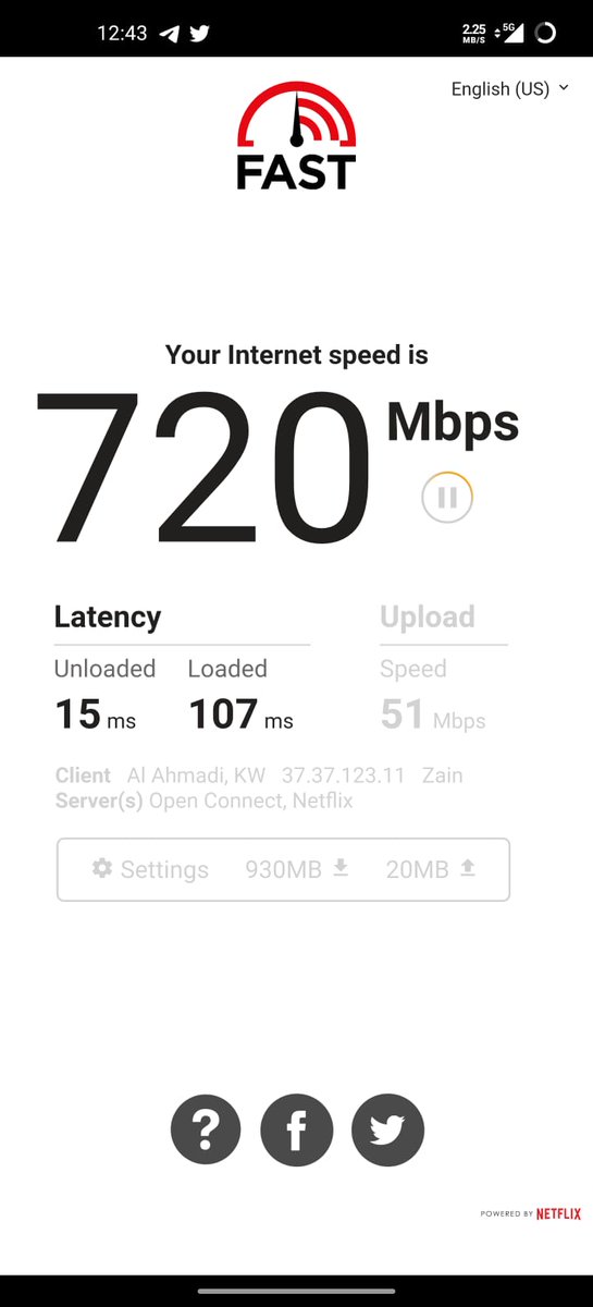 وهذا اختبار سرعة بعد تفعيل الـ 5G.