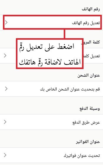 لاضافة عنوانك ووسيلة الدفع و رقم هاتفك الجوال