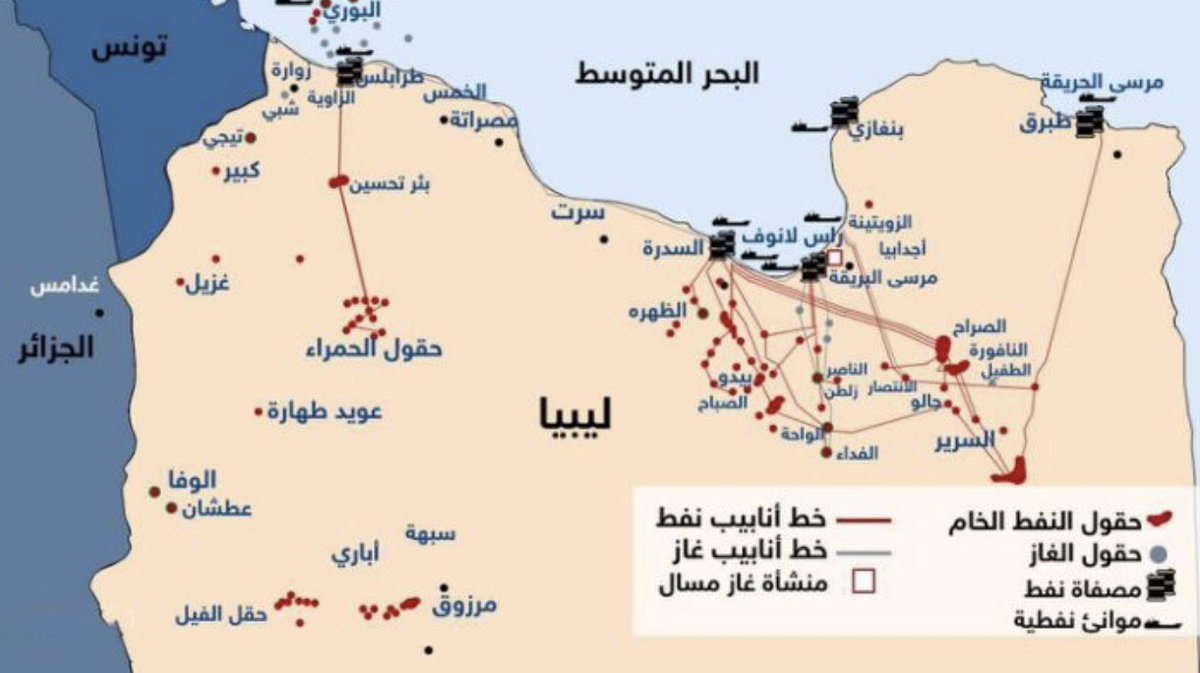 في المقابل، لا تزال أغلبية مساحة ليبيا تحت سيطرة الجيش الليبي بقيادة المشير حفتر، بما في ذلك منابع النفط.