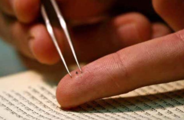 وظيفية بقياس 7 نانومتر أو نانومتر فقط (7 مليارات جزء من المتر). وبالمقارنة ، فإن حبلا من الحمض النووي البشري يبلغ حوالي 2.5 نانومتر وقطر خلية الدم الحمراء الواحدة حوالي 7500 نانومتر! هذه الرقائق النانوية تشغل نفسها من بيئتها (فهي لا تحتاج إلى بطاريات) ولها عمر 100 عام.