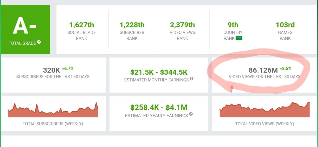 ايضا حاب انوه هذي فقط من اليوتيوب غير الاعلانات الخارجية مثل الالعاب والسلع الثانية اللي تقريبا تتراوح مابين ٢٠ الف الى ٥٠ الف ممكن،تزيد وممكن تنقص لكن النقص صعب ممكن تزيد