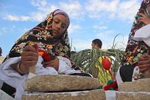 لذا تعيش في عزلة لأربعين يوماً، ولا تتزوج قبل مرور عام على وفاة زوجها. وتشارك الفتيات حتى سن الثانية عشرة في الاحتفالات الشعبية كاشفة نصف شعرها بينما لا يسمح للمرأة المتزوجة بأن تخرج للطريق إلا إذا غطت كل جسدها ووجهها بملاءة زرقاء تسمى"طرفوط" كما لا يسمح لها بالسير في الطريق ،،