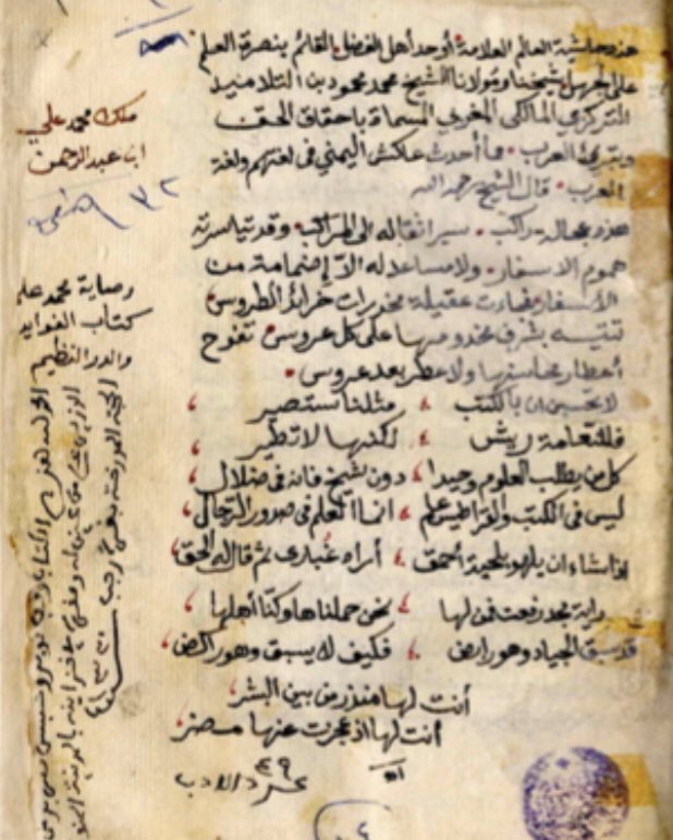 وجعلت العلامة محمـد ابن العلاّمـة سيـدي عبد الله ابن الحـاج إبراهيـم العلوي ـ رحمه اللـه ـ (ت 1250هـ) يقول: (إن علوم المذاهب الأربعة لو رمي بجميع مراجعها في البحر لتمكنت أنا وتلميذي ألْفَغّ الديماني من إعادتها دون زيدٍ أو نقصان، هو يحمل المتن وأنا أمسك الشروح)