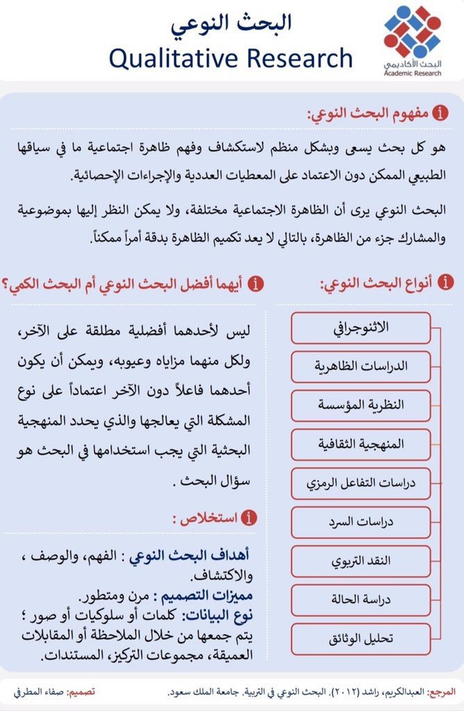 فكرت أكثر من مرة باعتماد #البحث_النوعي وتجربته في أحد بحوثي.. إلا أن معرفتي المحدودة به.. جعلتني أتراجع لليوم الذي أتمكن منه تماماً.. ولازلت أتطلع لتدوين كل قدراتي البحثية فيه.. وسيكون ذلك بإذن الله..