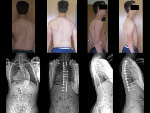 ف إنحناء العمود الفقري هو عبارة عن تشوه بحصل للعمود الفقري في شكل انحناء جانبي