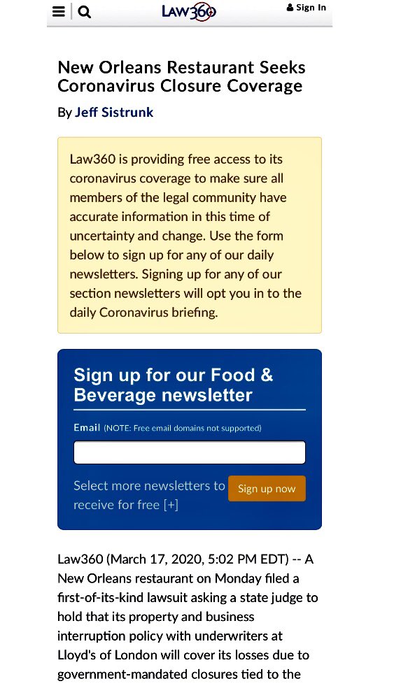وأشار المحاميJohn في طلبه هذا إلى أن موكلته تحمل وثيقة تأمين BI "جميع أخطار" وأنها -أي الوثيقة- لم تستثني تعطُّل الأعمال الناتج عن الجوائح بشكل صريح؛ وهو ما لا يمكن معه ترك موكلته بدون تعويض من شركة التأمين جراء توقفها عن العمل.