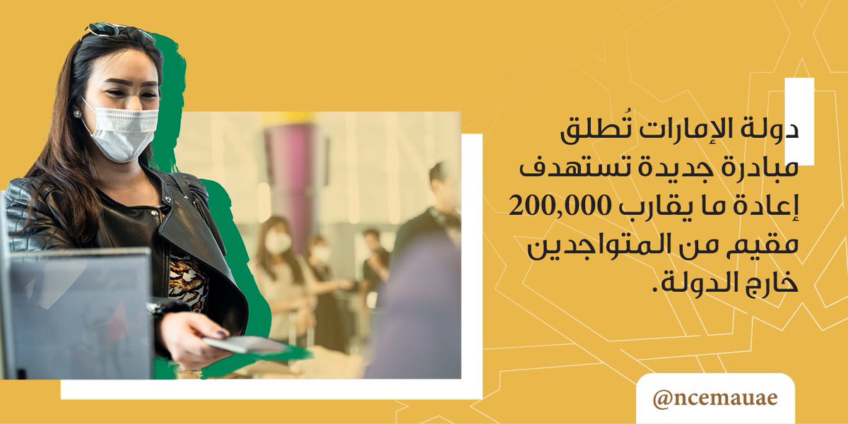 أطلقت دولة #الإمارات مبادرة لعودة المقيمين من أصحاب الإقامات السارية المتواجدين خارج الدولة حيث تستهدف عودة ما يقارب 200 ألف شخص، وذلك بالتنسيق بين وزارة الخارجية والتعاون الدولي @MOFAICUAEوالهيئة الاتحادية للهوية والجنسية @icauae.