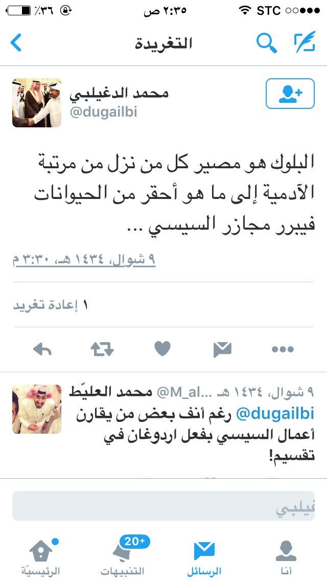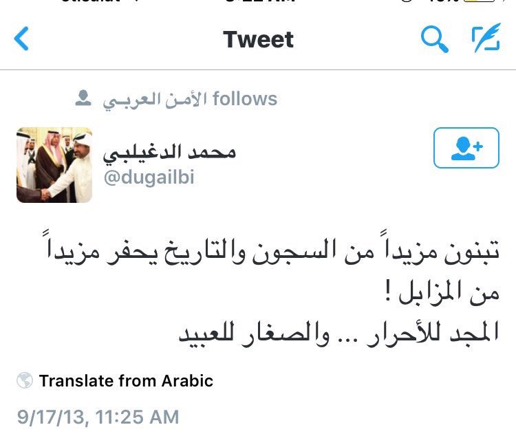 @saudiatv @media_ksa @malkassabi @khaledaloqaily حقيقة تغريدات كثيرة جدا لضيف برنامج #كلنا_مسؤول محمد طرجم الدغيلبي الذي اختاره خالد العقيلي وجميعها تغريدات مخالفة وذات توجه مخالف تم نشر جزء بسيط جدا منها ، ولا اعلم كيف يقوم اعلامنا باعادة تلميع وتدوير محمد طرجم وما هو الهدف
