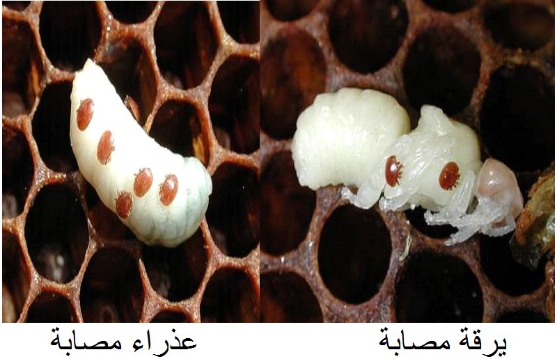يمكن رؤية أفراد الطفيل بالعين المجردة على جسم النحل وفى الحضنة المغلقة.