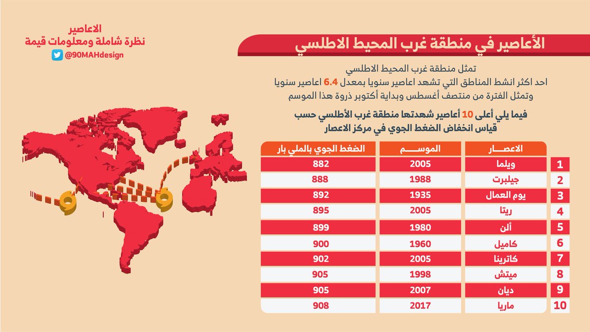 #الاعاصير هي احدى الظواهرة المدمرة التي تضرب الارض كل عام مسببه خسائر بشرية ومادية كبيرة في هذه السلسلة من التغريدات المدعومة بالتصاميم التوضيحية #إنفوجرافيك نتعرف على أهم الحقائق والمعلومات المتعلقة بهذه الظاهرة