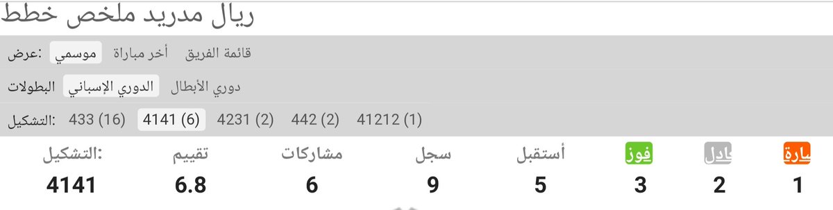 •خطة 1.4.1.4 طبقت في 6 مناسبات، بحصيلة 3 إنتصارات،تعادلين و خسارة. سجلنا بها 9 أهداف و تلقينا 5 أخرى