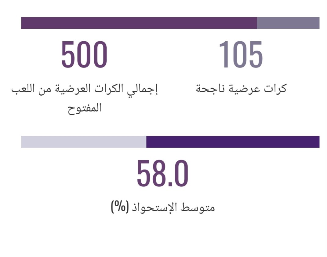 • توازن الفريق طوليا مضمون (25٪ من وقت المباراة في الدفاع، 43٪ في وسط الميدان و 32٪ في الثلث الأخير من الملعب)
