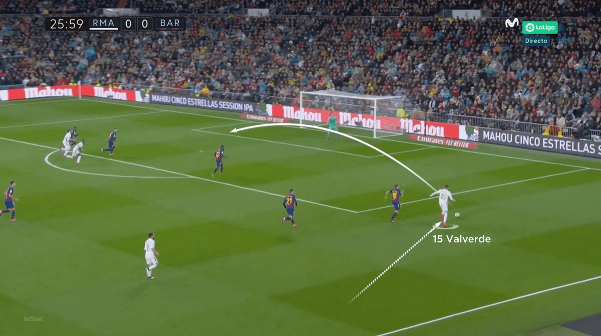 أثناء التحولات الهجومية يستطيع فالفيردي القيام بهجمة مرتدة من خلال تبادل التمريرات مع أقرب زميل له ثم الجري بسرعة ، زيدان يطالب لاعبيه بالبقاء مستعدين لإحتمالية بدأ هجمة مرتدة وقدرة فالفيردي بشكل خاص على القيام بذلك أحد الأسباب التي تجعل زيدان يقدره إلى هذا الحد.