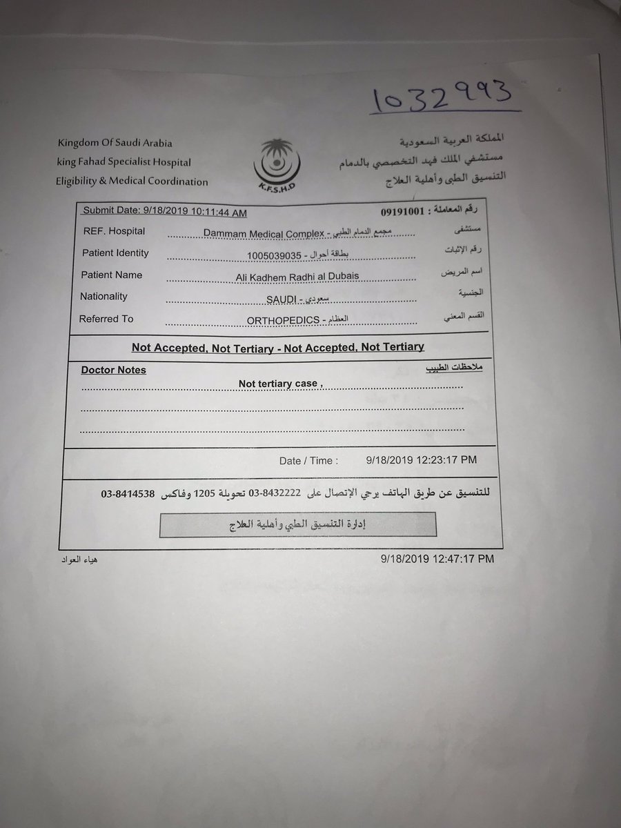 تم إقرار علاج لي داخل المملكة في مدينة الأمير سلطان للخدمات الانسانية بالرياض وتم الرفض بعدم توفر العلاج / ومستشفى الملك فيصل التخصصي بالرياض وتم رفض القرار بعدم توفر العلاج الازم لحالتي .. مالنا اختيار للعلاج سوى بالخارج في المانيا 🇩🇪 لذا آرجو قبول قرار علاجي ع نفقة الدولة 💚