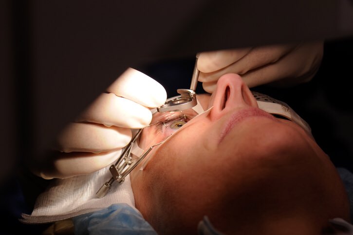 يستخدم الجراح ليزر الفمتوثانية أو الشفرة التي تسمى القُطْرَة الدقيقة لقطع جزيء رفيع من الأنسجة من الجزء الأمامي من العين.