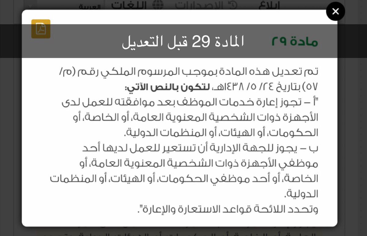 إشارة إلى قرار #مجلس_الوزراء يوم الثلاثاء الماضي بتعديل #نظام_الخدمة_المدنية فحسب ما سمعنا أن التعديل شمل 6 مواد وهي المواد: 17 و 20 و 22 و 29 و 35 و 37