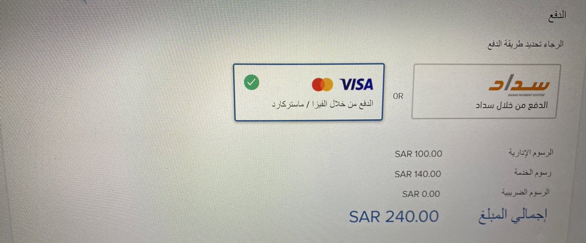 ⬅️ طيب انا هنا صارت لي مشكلة و علمتكم عليها فوق و هي السداد المفروض يكون عن طريق سداد احسن لاني قاعد اسدد فيزا من اول سداد الى اخر سداد بس المشكلة صارت لي في الاخير و ان الفلوس انسحبت مني بدون ما يتم السداد الثالث في الموقع للاسف بعكس اللي سدد من " سداد " تمت له و استخرج الرخصة