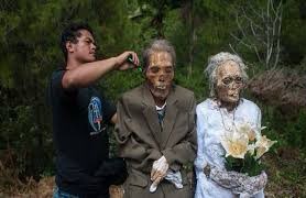 في منطقة «توراجا»، في إندونيسيا، تمارس بعض الجماعات العرقية طقوسا غريبة تتضمن العيش مع جثث ذويهم لعدة أشهر قبل دفنها، حيث يبقون على الجثث في غرفة منفصلة في المنزل.