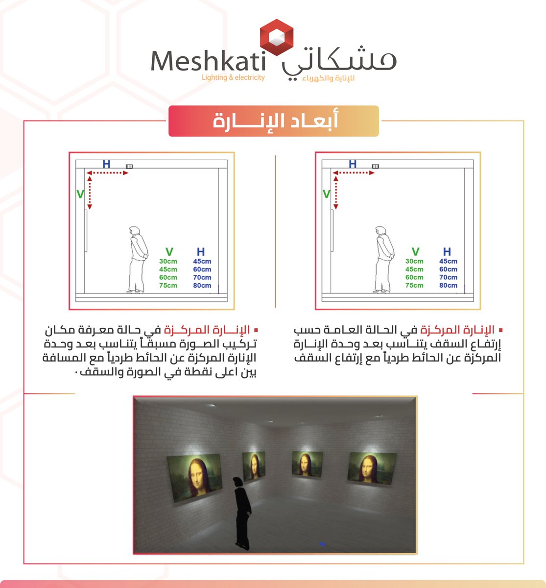 أسفل هذه التغريدة سوف نضع نصائح عن الأبعاد المناسبة للإنارة
