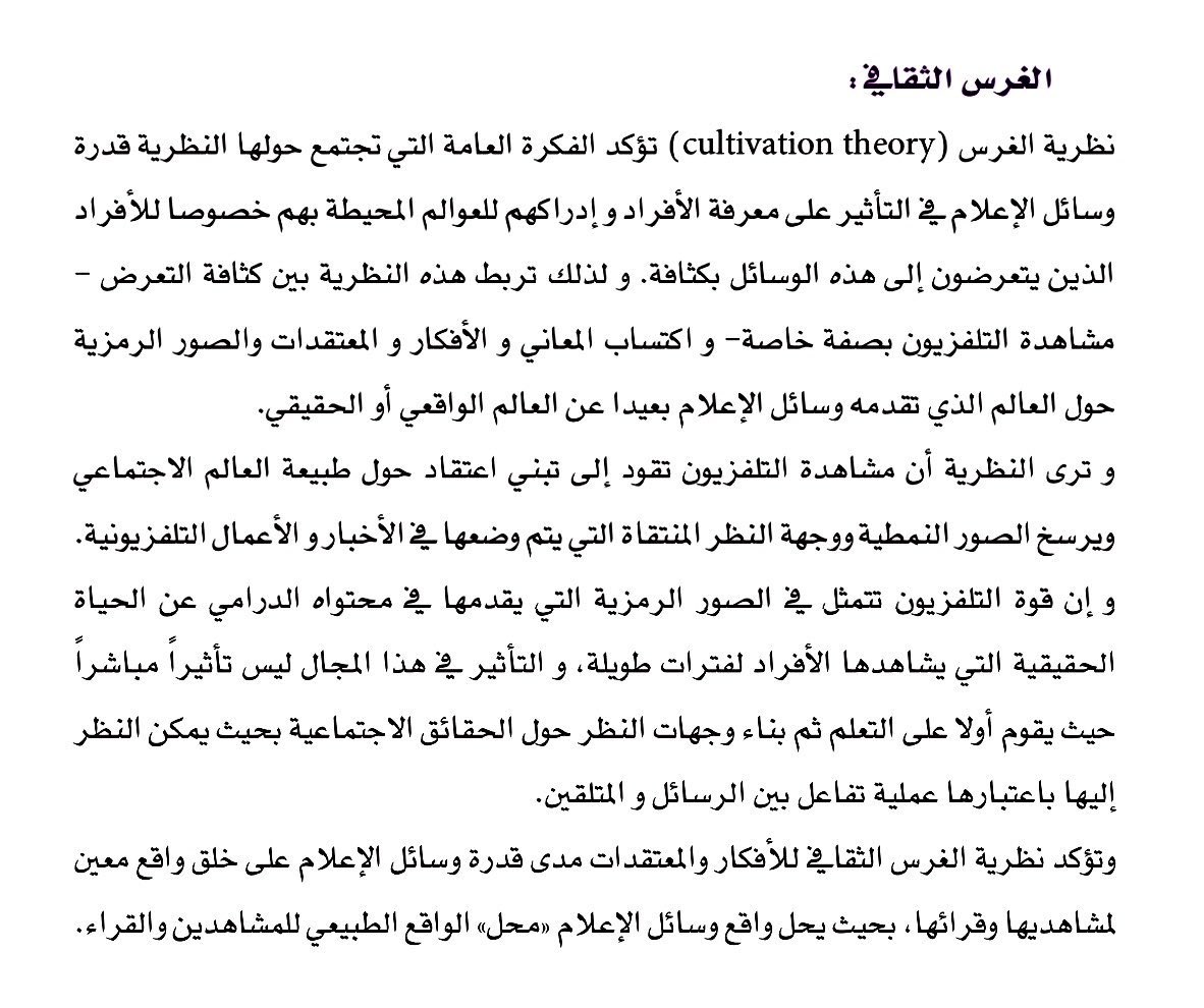 نظرية تظهر قدرة وسائل الإعلام في التأثير على الجمهور " الذين يتابعون هذه الوسائل بكثافة " بخلق واقع معين وإدراكات جديدة وأفكار ومعتقدات مختلفة ، عن الواقع الحقيقي الذي يعيشونه ومغايرة له .
