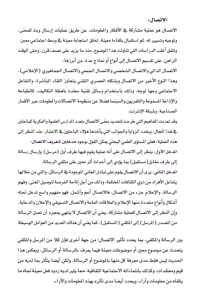 هو عملية مشاركة في الأفكار والمعلومات ، عن طريق عمليات بث وإرسال للمعنى ، وتوجيه وتسيير له ، ثم استقبال بكفاءة معينة ، لخلق استجابة معينة ، في وسط إجتماعي معين .