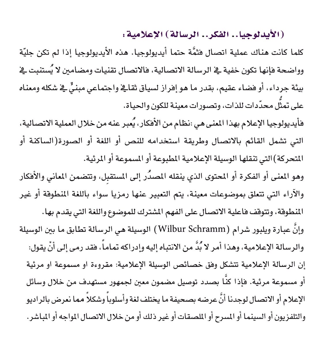 هذه الأيدلوجيا ، هي نظام من الأفكار يعبر عنه من خلال العملية الإتصالية ، وهي المعنى أو الفكرة أو المحتوى الذي ينقله المصدر إلى المستقبِل .