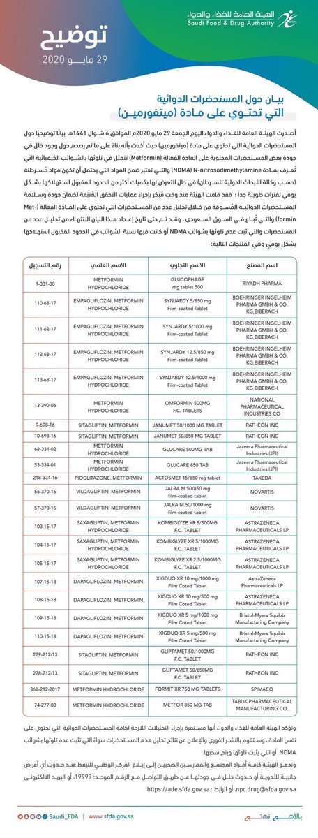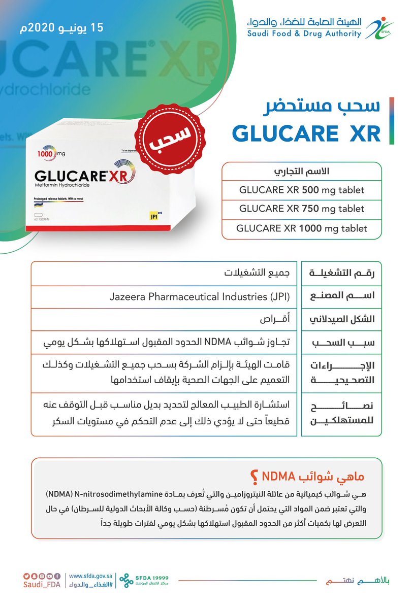 ❇️بعد قرار هيئة الغذاء والدواء السعودية من الشركة المنتجة سحب علاج جلوكير إكس آر