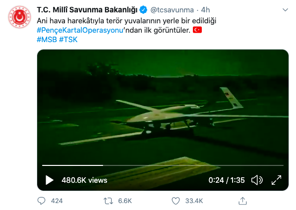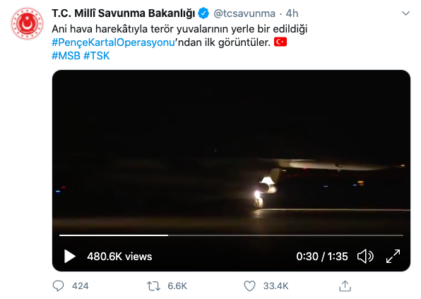 قامت وزارة الدفاع التركية بنشر هذا الفيديو، تدعي أنها تستعرض الصور الأولية للعملية العسكرية النوعية غير المسبوقة في شمال العراق.