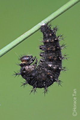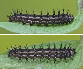 تخرج اليرقة ( اليسروع ) ، فتأكل أول شيء قشرة بيضتها كوجبة أولى