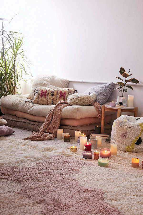 وهذي أمثلة على ركن بس من غير تكاليف كثيرة مجرد سجادة،شوية لوحات بسيطة وإضاءة ومفرش كبير مريح للجلوس والتأمل او القراءة
