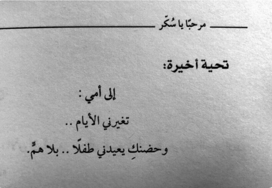 وسرعان ما يلوذ في فؤادي الحزن، ولكنّي سعيد، سعيدٌ جدًا لأنها هنا، لأنها بقربنا، لأنها تحدثنا، لأنها تبتسم رغم عدم معرفتها لنا، فيكفيها أن نرد نحن من أبنائكِ، فتغمرها السّعادة الكبيرة.