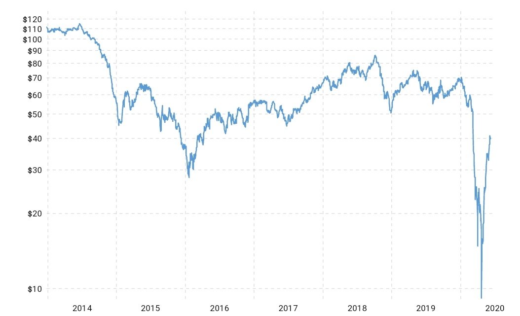 *لو* اتخذ سعر النفط للخمس سنوات القادمة نفس المسار الذي اتخذه بين اواخر 2014 وحتى نهاية 2019 فإن مالية المملكة ستكون في وضع لايسمح لها في الإنفاق بمثل مستوى الخمس سنوات الماضية عندما كان هناك مساحة مالية أوسع fiscal space بسبب الاحتياطيات وانعدام الدين تقريبا
