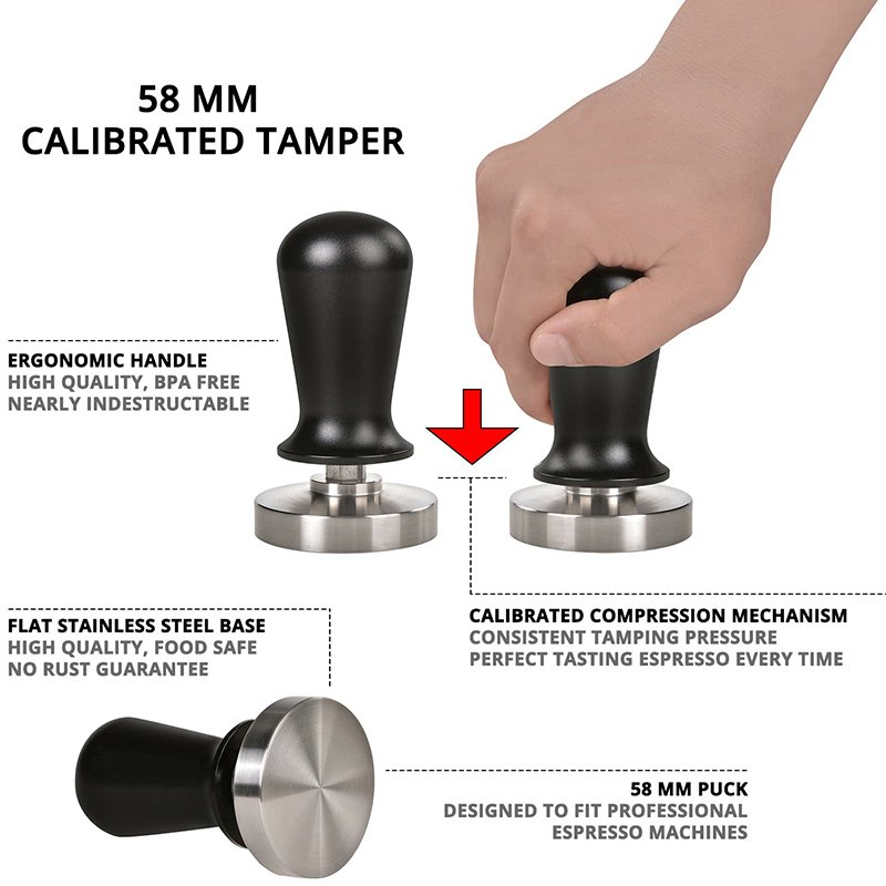 لكي تتجنب الضغط الخفيف أو القوي إذا كان ضغطك خفيف يصبح نزول القهوة سريع وإذا ضغطك قوي تصادف أحيان نزول خفيف مرة .. هذا التامبر هو الحل .. اختار مقاس 51mm