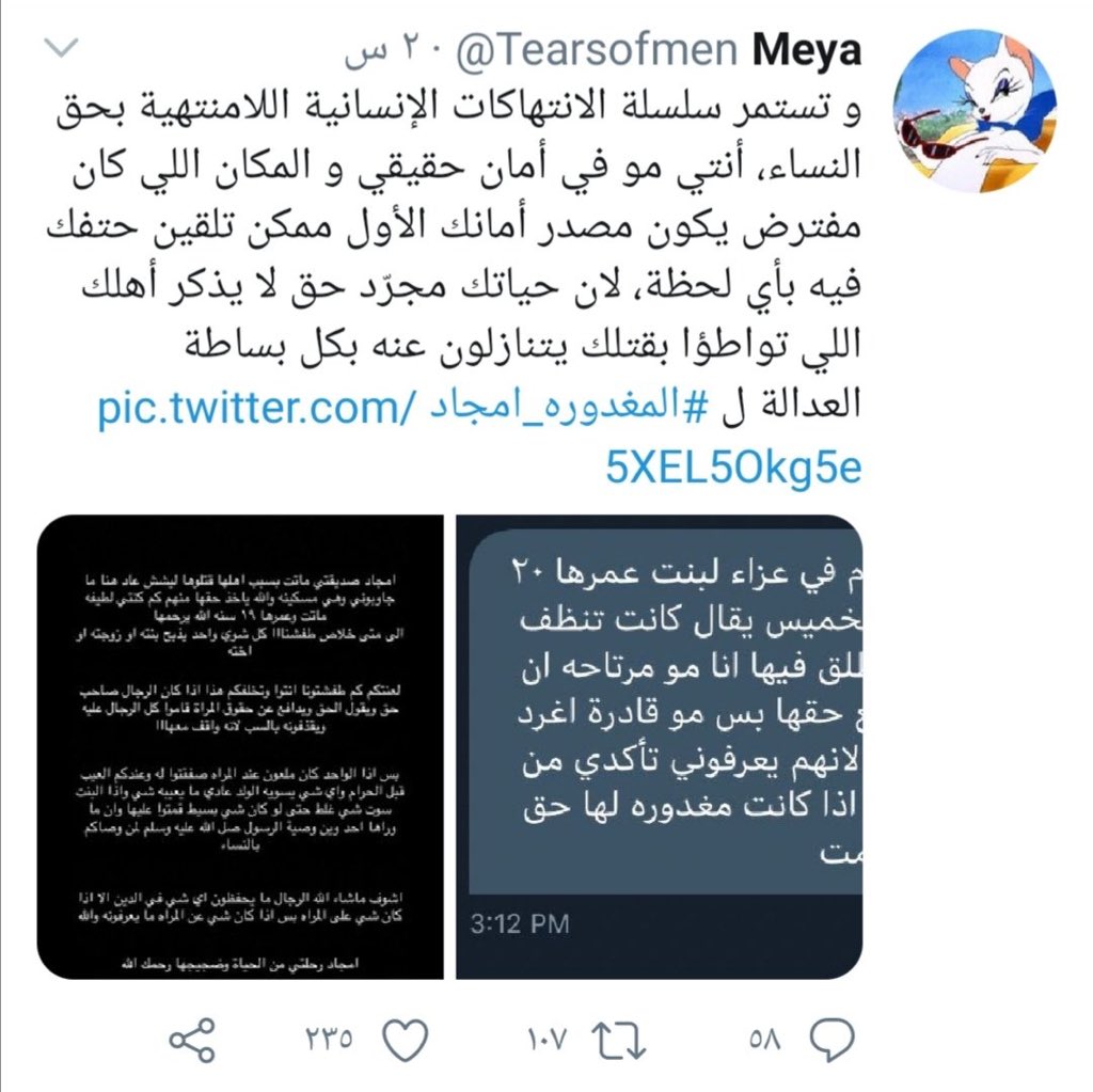 كالعادة سيناريو جديد من النسويات هذه المره بعنوان #المغدوره_امجاد :)