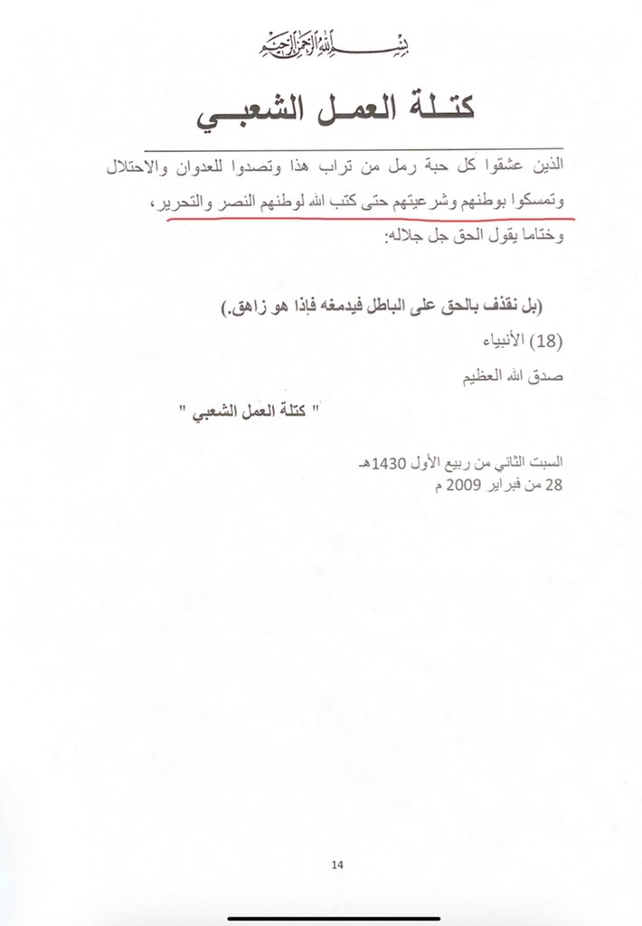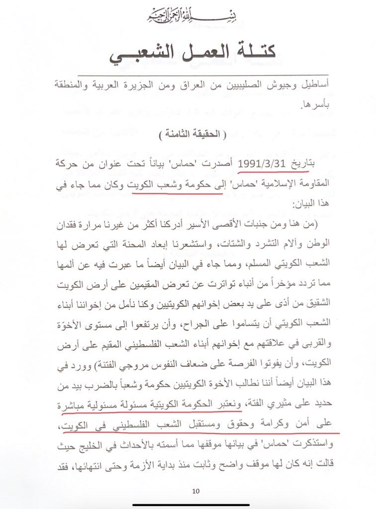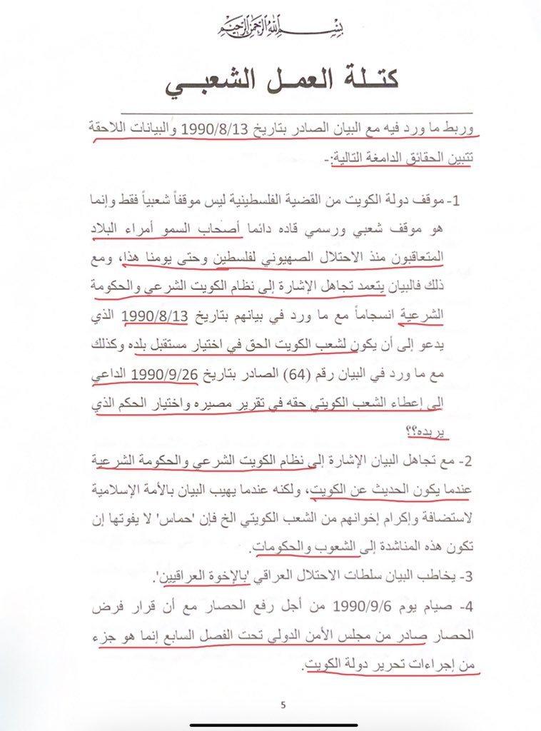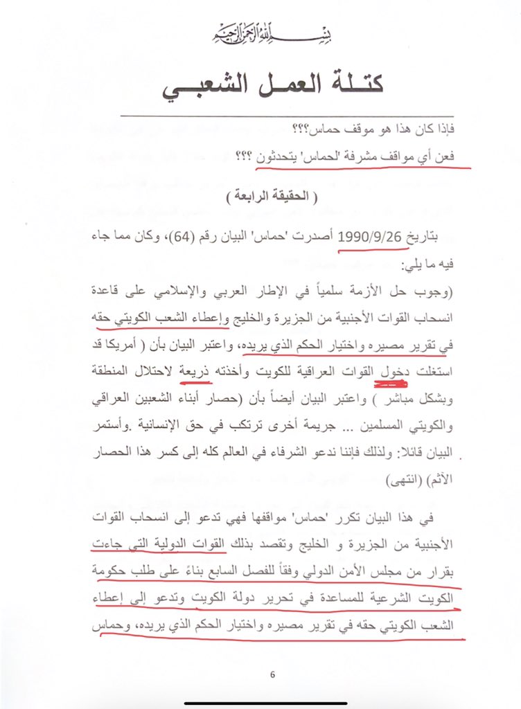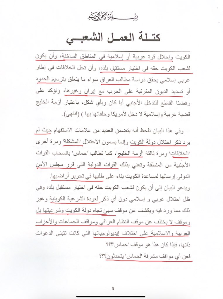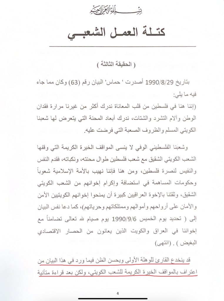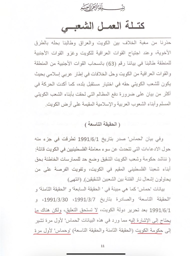 مع كامل التأييد لثورة الشعب التونسي وديمقراطيته، ولكن، من أجل "الحقيقة والتاريخ" استنكار موقف الغنوشي واجب، و"للحقيقة والتاريخ" سبق أن ردت كتلة العمل الشعبي في ٢٠٠٩/٢/٢٨ على إعلان نشر في الصحف الكويتية من جمعيات واتحادات كويتية بما أسمته "وثائق تؤكد المواقف المشرفة لحماس"