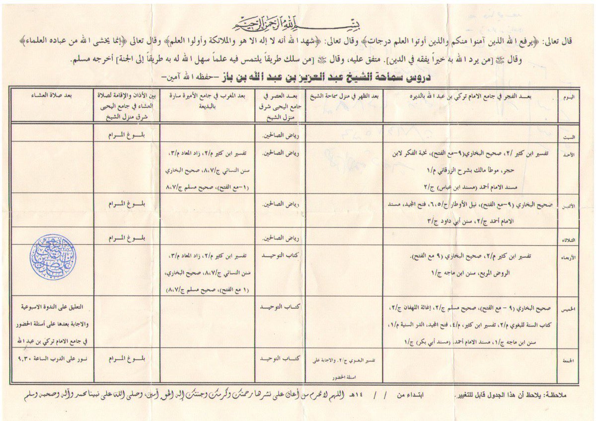 دروس شيخنا ابن باز، ودرس شيخنا الفوزان، وابن غديان، وغيرهم.