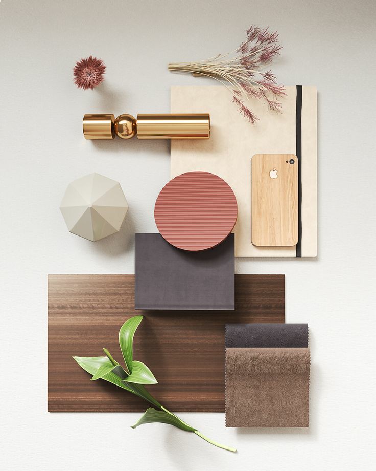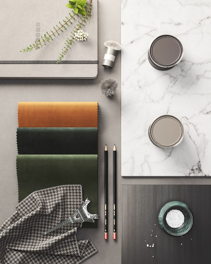 وذلك عن طريق جمع عدد من الصور والمواد والخامات المستخدمة في المشروع سواء كنت مصمم ملابس او مصمم ديكور