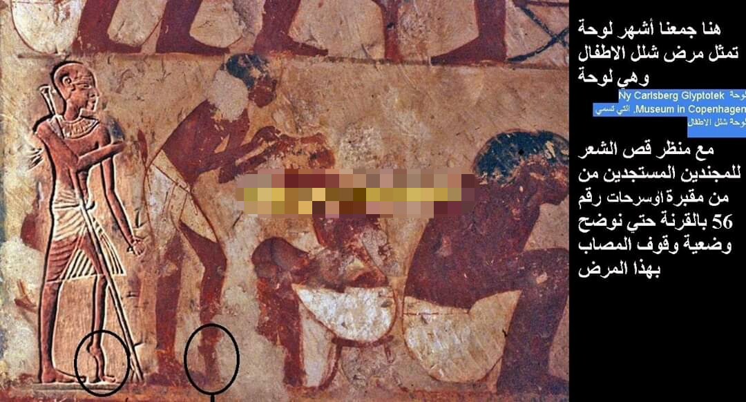 ونظراً لشهرتها فقد أطلق عليها لوحة "شلل الأطفال"وتعود (1550-1080ق.م) واللوحة ليست حالة نادرة لأن في مناظر لحالات شلل الأطفال تعود للدولة القديمة