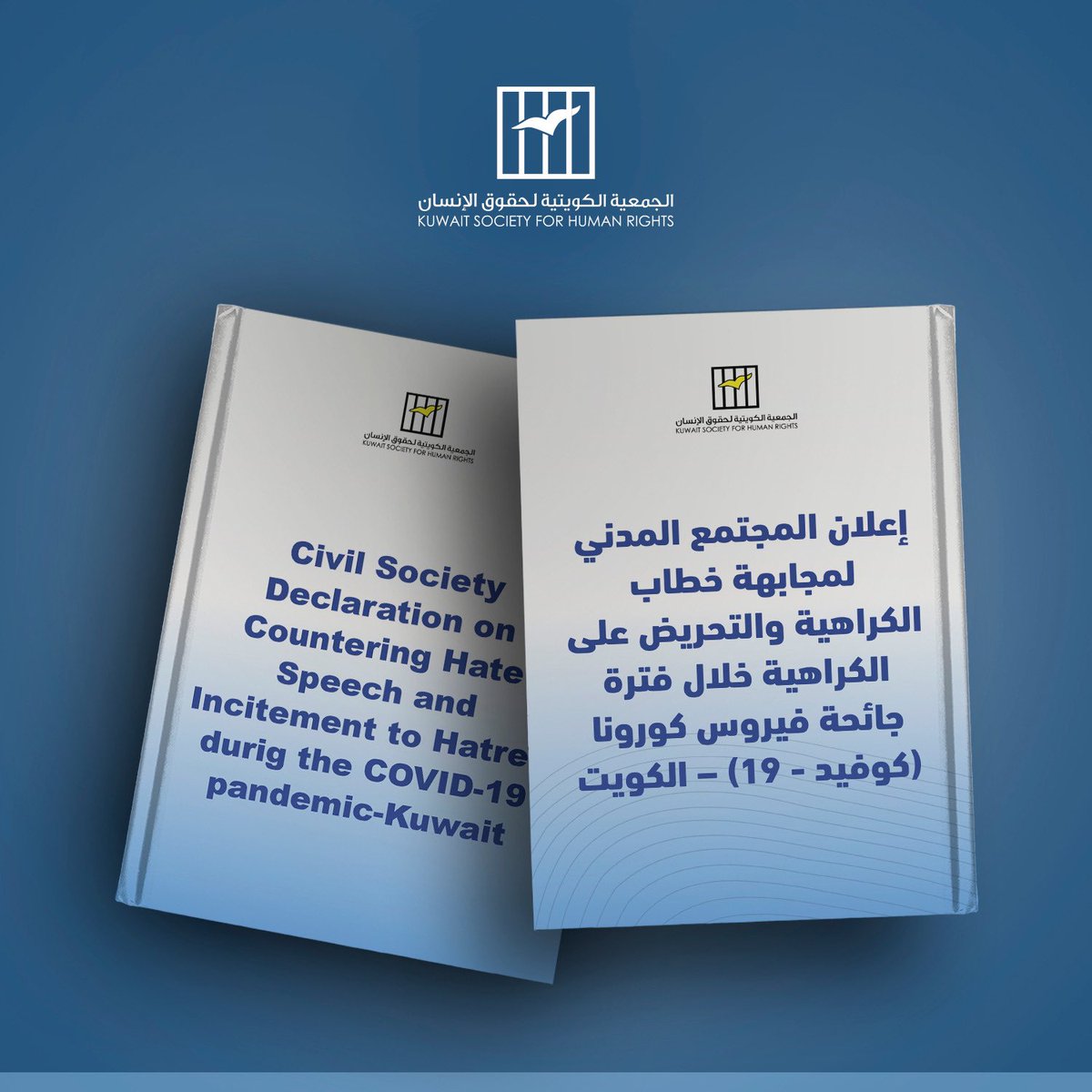 تعلن 24 جهة مدنية في الكويت بقيادة الجمعية الكويتية لحقوق الإنسان عن إطلاق: "إعلان المجتمع المدني لمجابهة خطاب الكراهية والتحريض على الكراهية خلال فترة جائحة فيروس كورونا (كوفيد - 19) – الكويت".