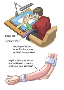 👍🏻 العلاج الأولي التحفظي لمرضى #متلازمة_النفق_المرفقي يكون عن طريق: