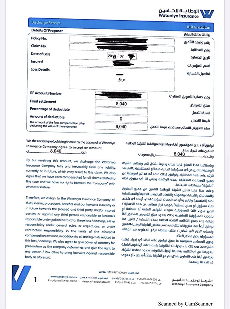حاليا تم رفع المطالبه لشركة ملاذ للتامين وتم ارسال نفس المقيمة العقارية الاولى علما انها تاخرت يومين وعند الاتصال بها افادة بانه لم تصلها رسائل واتس اب وموقع المنزل وعند طلبنا ارسالها لها مره اخرى اكتشفنا بانها قامت بحضرنا في الواتس اب بسبب المطالبة الاول