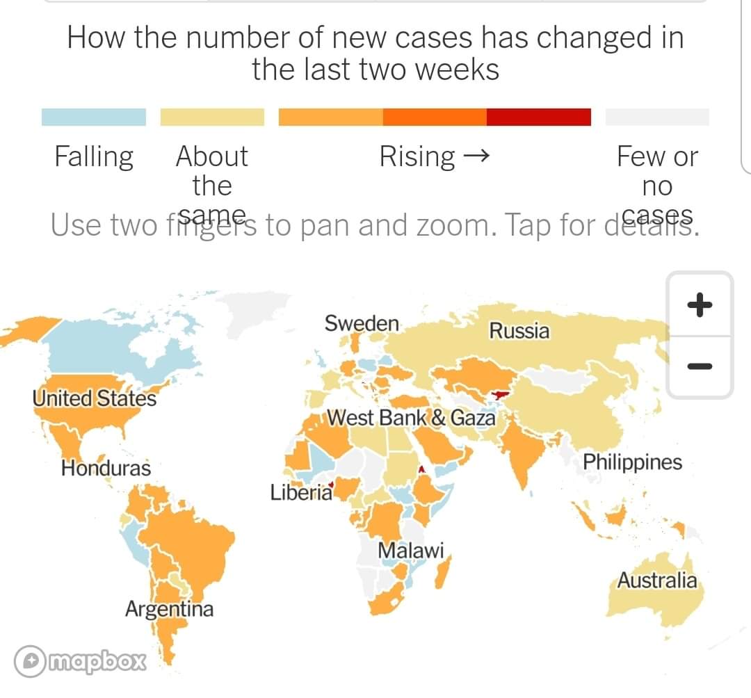 (بسبب من تعقد عوامل الانتشار الوبائي من حركة المسافرين والمناعة المحلية وتأثير السياسات المختلفة وتوقيتها وأثر المناخ وغيرها من العوامل المتداخلة) ، إلا أن التزايد الحاد في العدد الكلي مع الانخفاض النسبي في الوفيات هو أمر مفهوم بسبب تزايد عدد الدول