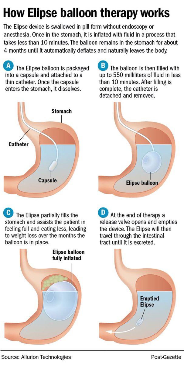لكن في المجمل يعتبر ال ellipse balloon فعال و اسهل للاشخاص الذين لا يريدون اجراء المنظار او التخدير. يمكن وضع البالون في العيادة و دون اي تخدير. بعد انتهاء الفترة المحددة و هي ٣ اشهر يسمح الصمام بتسريب السائل و من ثم تفريغ البالون و عبوره بسلاسة عن طريق الجهاز الهضمي الى الخارج.