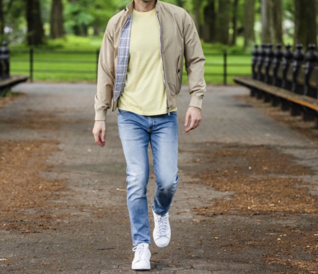 * البنطلون او الجينز مايكون متكدس على الحذاء (مرتفع شوي).