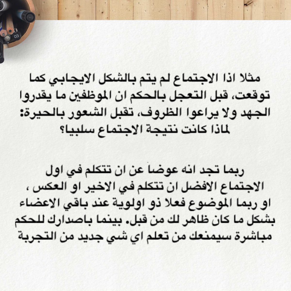 فكرته عن احتواء الحيرة تتعامل مع ظروف الحياة الاجتماعيةوليس العمل فقط.الناس ممكن يواجهوا مواقف تزعجهم كل يوم. الهدف ان تنظر الى اعمالك ومواقفك كل يوم كتجربة يمكن الاستفادة منها وليست مجرد مهمة تقوم بها