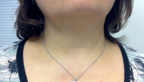 اغلب المرضى لا يشتكون من اي اعراض تذكر ، و يكون سبب الاستشارة الطبية فقط نتيجة ملاحظة التضخم . بعض المرضى يشتكي من احساس ضغط على الرقبة ، خصوصاً اذا كان حجمها كبير او يزيد مع مرور الوقت .