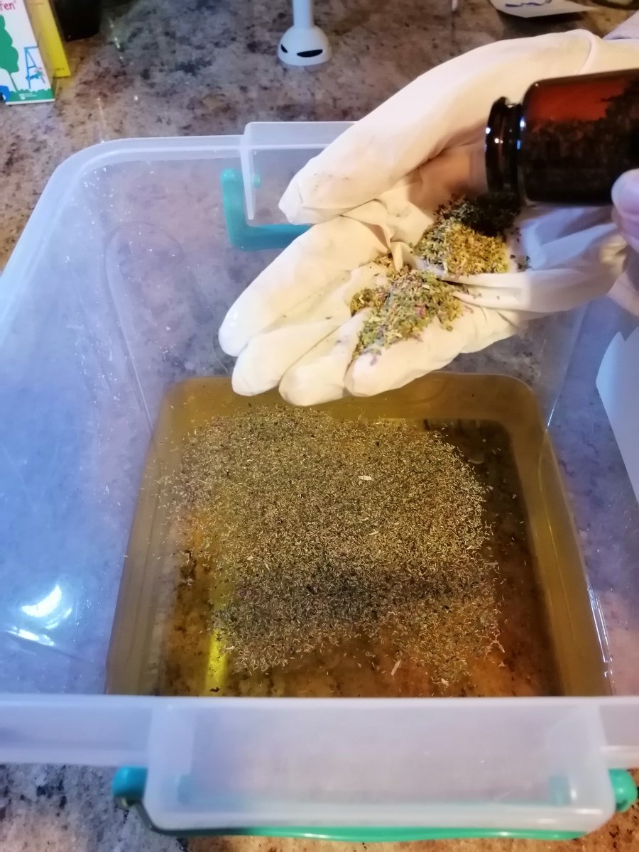9️⃣ اذا حبيتو تضيفو للصابون بعض الأعشاب الجافة والمطحونة فيكن تزيدو المكون لبتحبو وهيدا بينضاف فوق الزيت قبل ما نحط lye solution