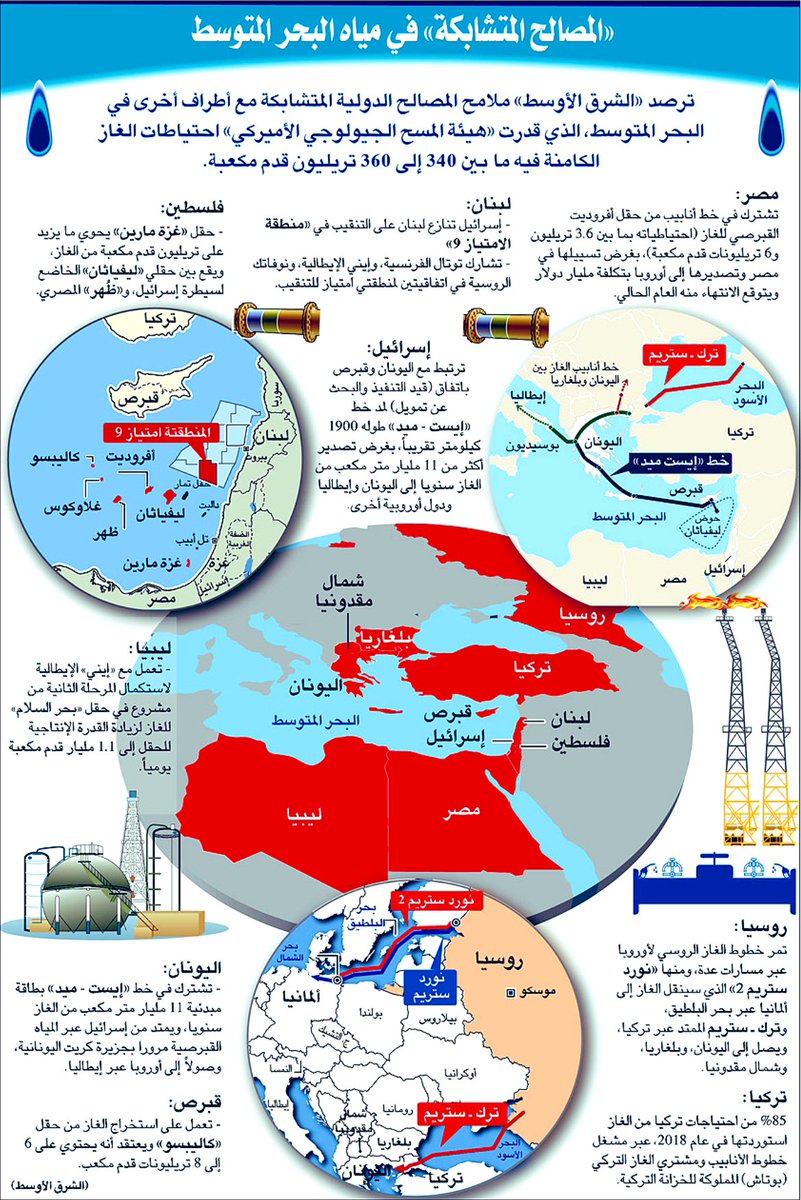 والذي يعكس رغبتها بالسيطرة على حصص الغاز المكتشف بالمنطقة ، ويفسر سر تدخل الكثير من الدول والمنظمات في النزاعات القائمة بين دول المنطقة