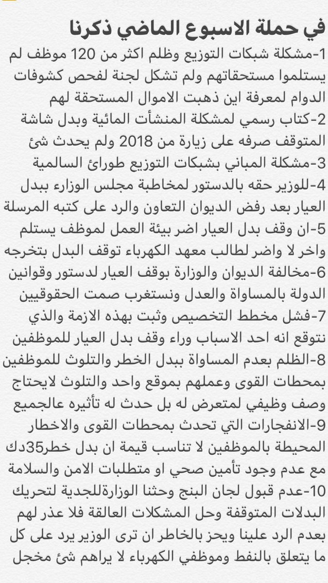 بحملة الاسبوع الماضي على هشتاق #عاملي_وزاره_الكهربا